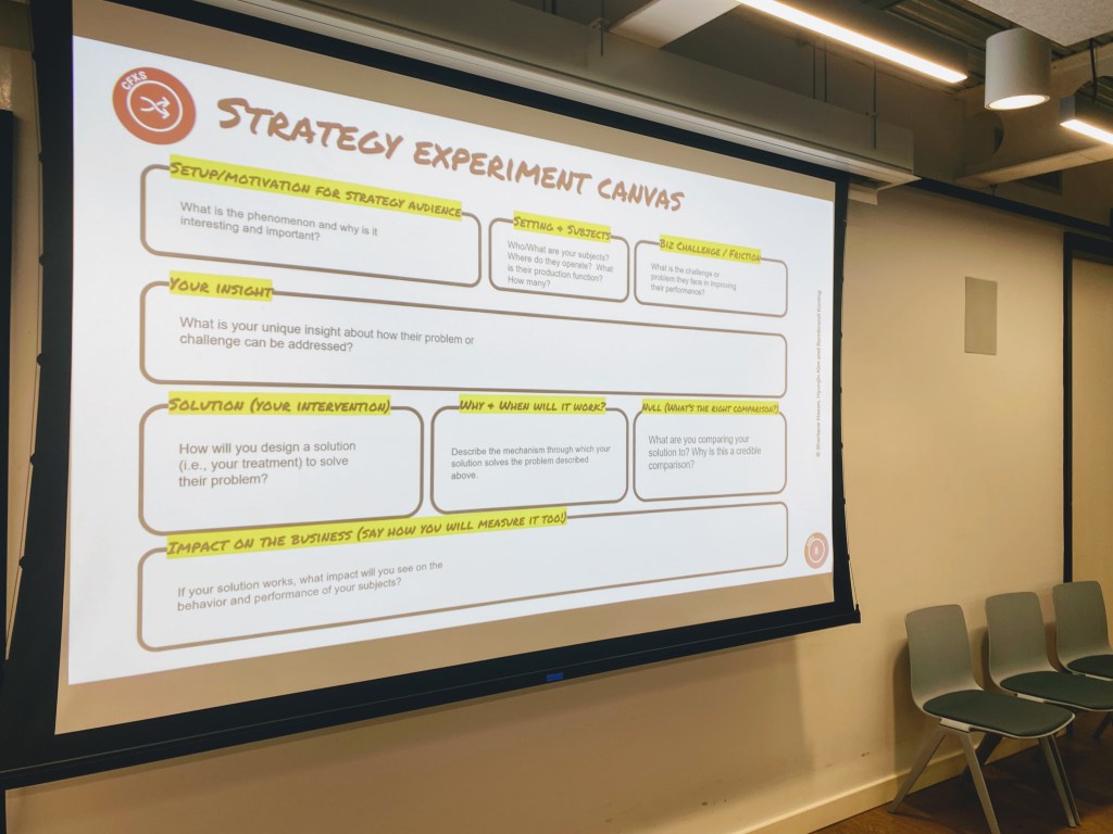 Upon request, here is the Strategy Experiment Canvas we used at the PhD workshop last year.